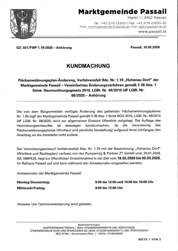 Kundmachung Flächenwidmung-Änderung "Hohenau Dorf"